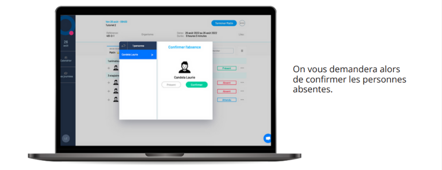 Validez les présences de vos participants présents aux modules de formation. Comme pour les autres menus, vous avez la possibilité de faire des actions en masse ou de valider les présences individuellement.
