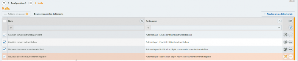 Des modèles sont intégrés sur votre base. Vous pouvez les modifier dans la configuration :