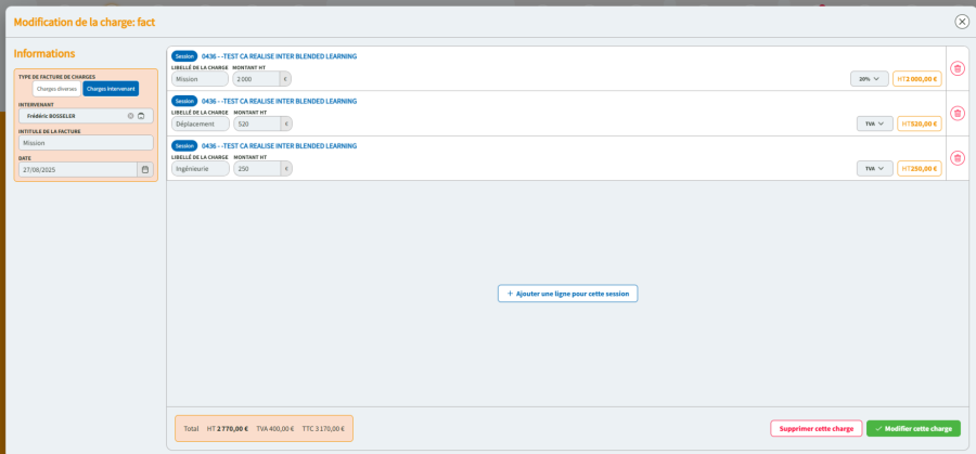 - Puis cliquez sur : Charges intervenants