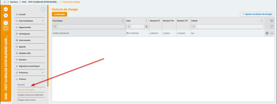 - Allez dans le menu : Finance > Factures de charges