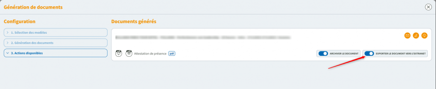 📝 Lors de la génération d’un document, cochez l’option « Exporter vers l’extranet »