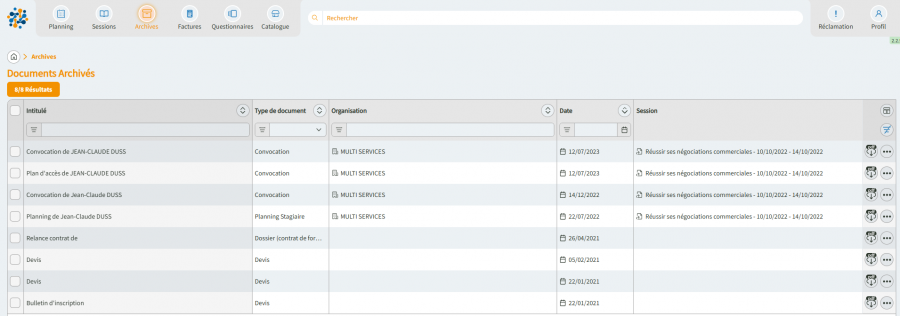 🗂️ Accéder à tous les documents via le menu Archives (déposés par l’organisme ou les intervenants)