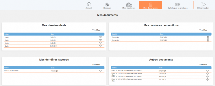 Page mes documents