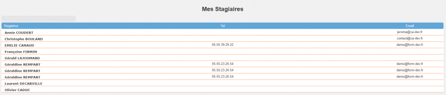 Page Mes stagiaires