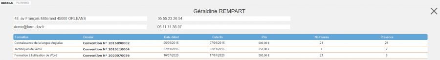 Détail des formations par apprenant: