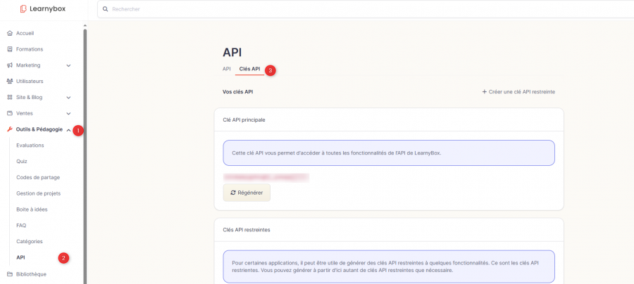 🔐 3. Récupérer la clé API depuis Learnybox