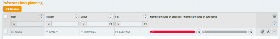 Les présences apparaîtront ensuite dans le sous-menu Présence Hors planning :