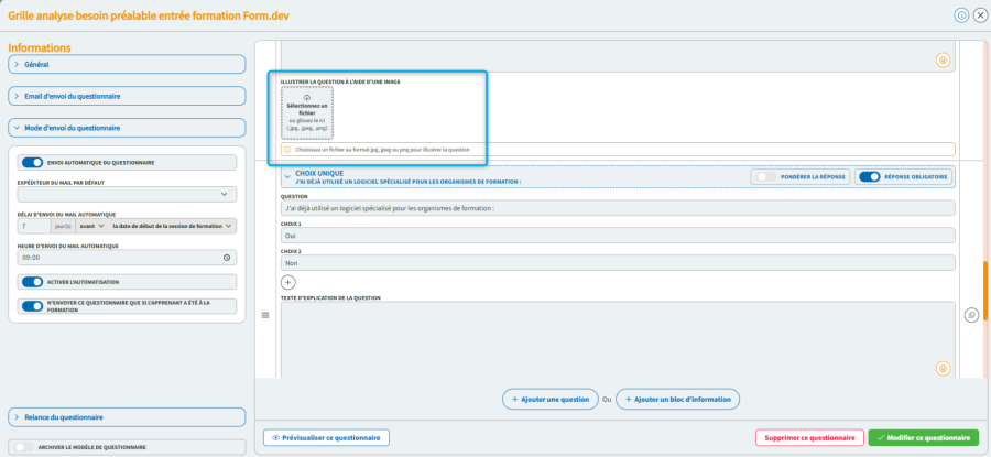 • Possibilité d’ajouter des images par question dans vos questionnaires.