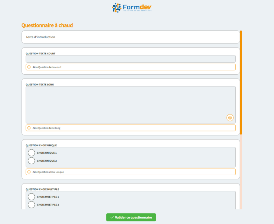 Vous pouvez également ajouter un texte d’aide pour chaque question si besoin.