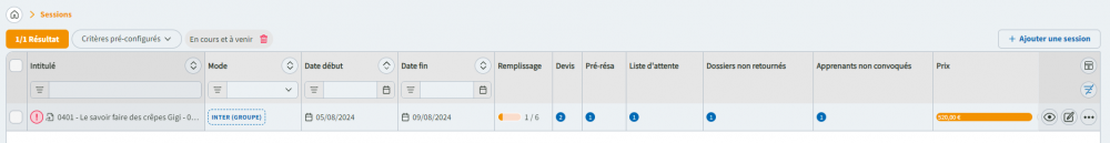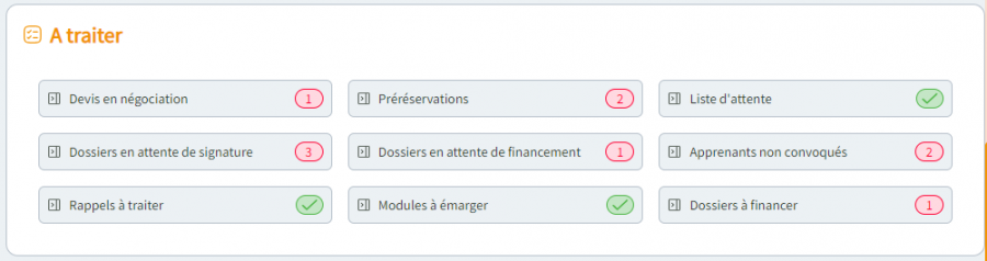 Ce contenu vous permet de connaître l’ensemble des tâches à traiter ou saisir pour cette session, afin que la partie commerciale, administrative, pédagogique, soit conforme.