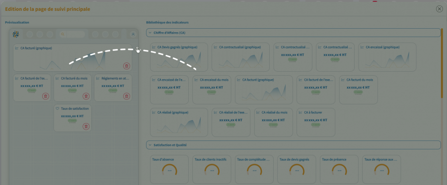 - Disposez vos indicateurs à l’endroit ou vous le souhaitez dans votre page d’accueil.