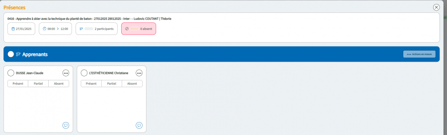 En cliquant sur cette fonctionnalité, vous allez indiquer que tous les apprenants ont été présents au module de formation.