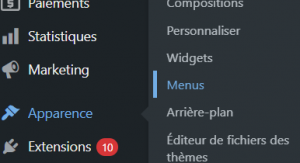 Pour le mettre en place, copiez-collez le lien et vous pourrez l’ajouter dans votre menu. Allez sur la page “apparence” et dans l’onglet “menu” sur Wordpress.
