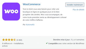 Pour que le plugin “Formdev” soit fonctionnel, il vous faut impérativement le plugin Woocommerce. Installer le dans la même page “Ajouter une extension” en le cherchant dans la barre de recherche