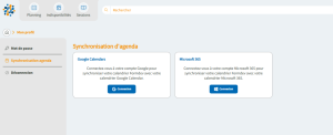 Synchronisation agendas de vos intervenants Vos intervenants peuvent à présent connecter leur intranet intervenant à leur propre agenda Google ou Microsoft. L’ensemble des modules créés sera rajouté à leur agenda personnel. Vous verrez également dans vos agendas et plannings leurs indisponibilités.